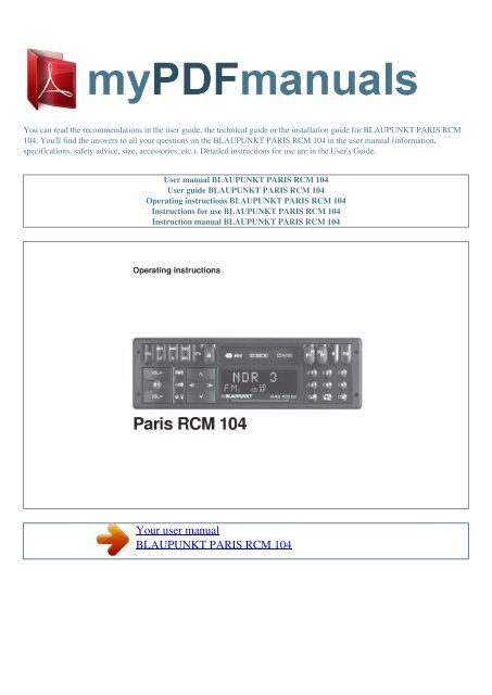 View and Download Blaupunkt PARIS RCM 104 operating instructions manual online. Blaupunkt Car Stereo System User Manual. PARIS RCM 104 Car Stereo System pdf manual download. Also for: Stockholm rcm 104.